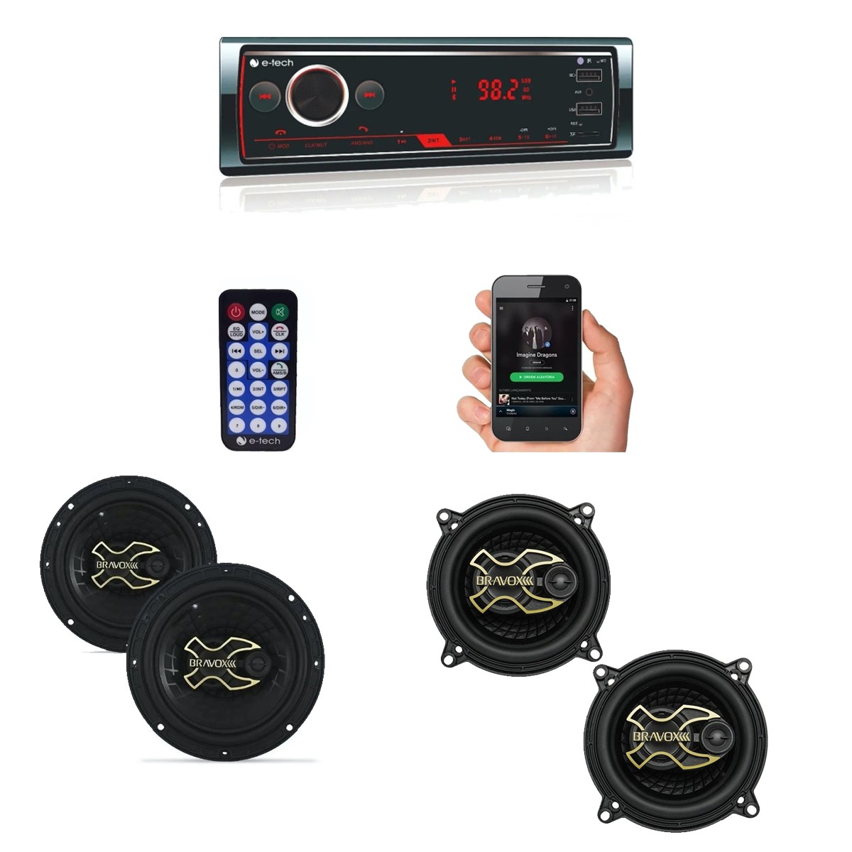 Descrição Mp3 Player Automotivo E-Tech Premium BT Bluetooth 2 Usb Sd Aux Rádio Fm Rca Equalizador - E-Tech: