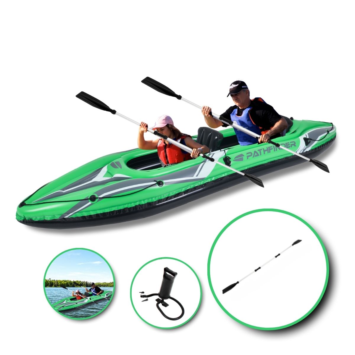 • Acessórios: 2 assentos removíveis, bomba, 2 remos, apoio