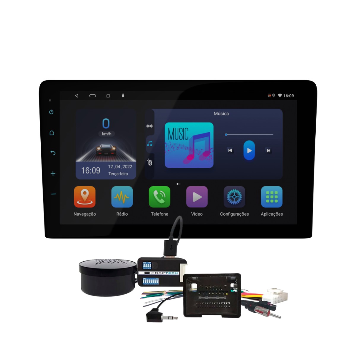 Descrição Central Multimídia FT-MM-AND10.1+ interface comando de volante FT-SW-GM: