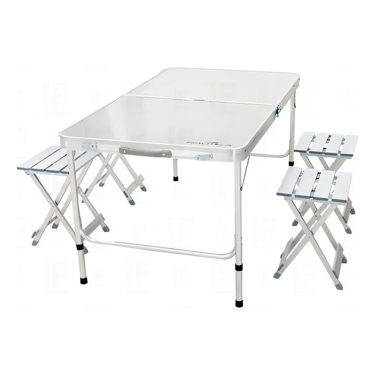 O conjunto Royal da Nautika é uma mesa e quatro banquetas dobráveis para camping super fácil de carregar!