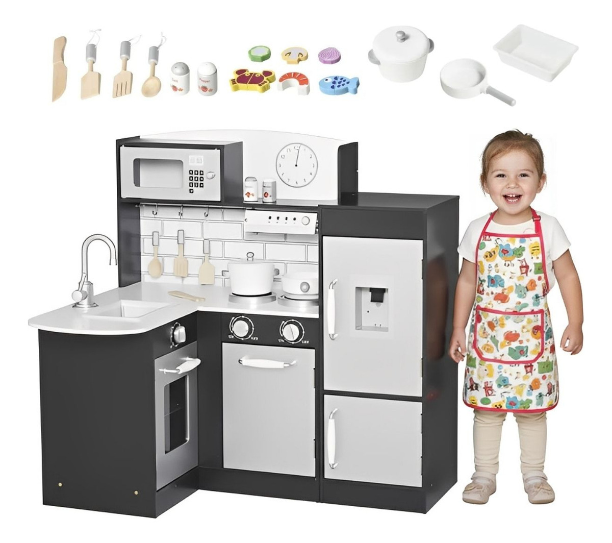 Kit Cozinha Infantil Grande Moderna Com Geladeira Mdf Preta Importway