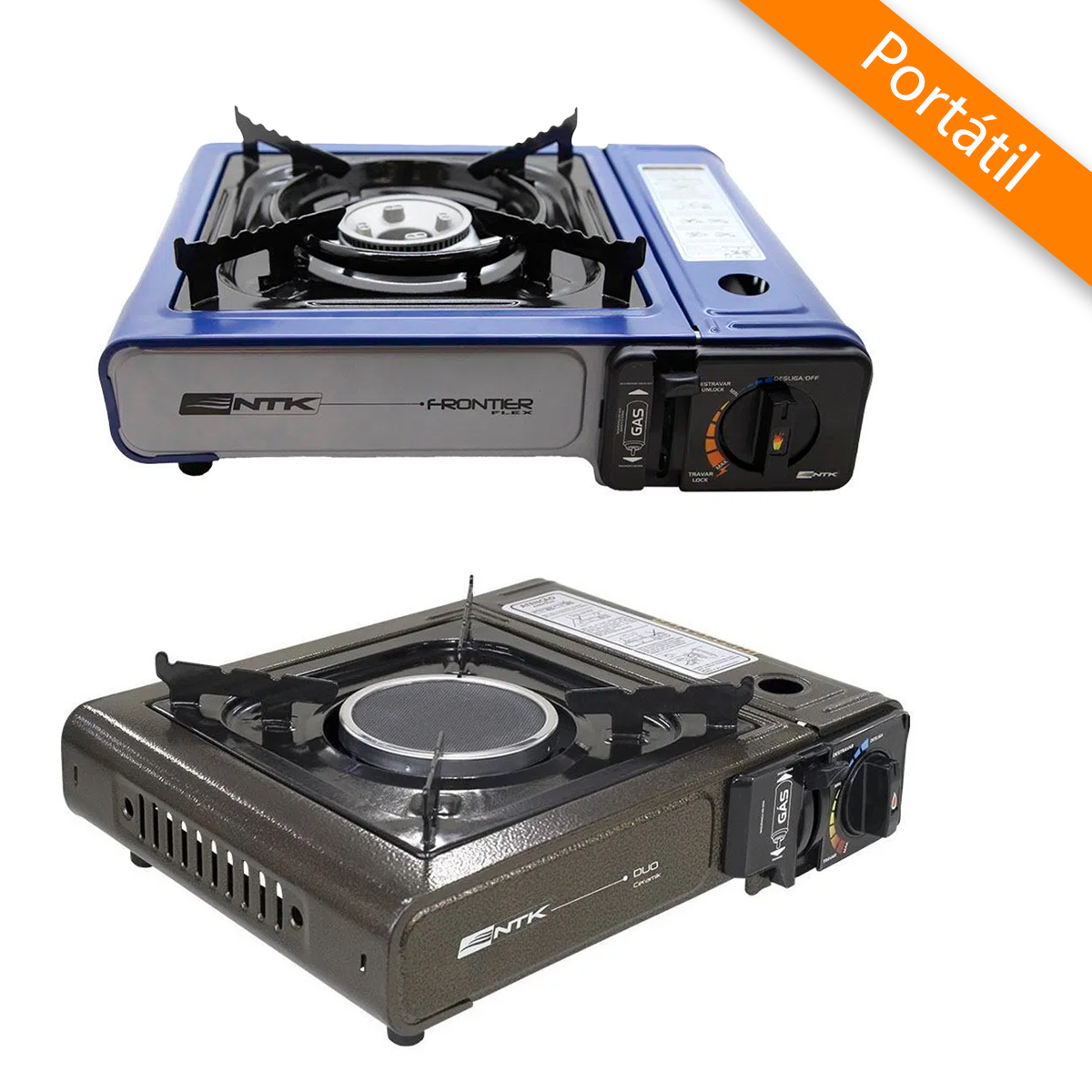 --- Descrição: Fogareiro de Mesa Portátil Frontier 3 em 1 e Duo Ceramik com Ignição Automática Flex Fuel Camping e Pesca - NTK Nautika