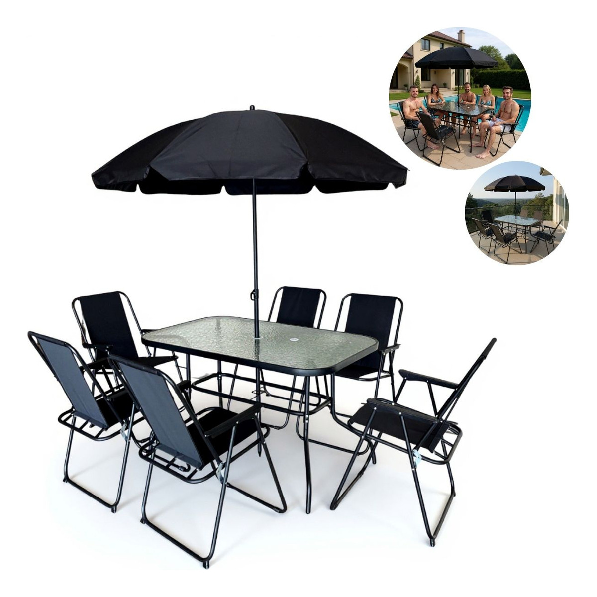 Jogo Conjunto 8 peças Mesa, Cadeiras e Guarda-Sol Lazer ImportWay