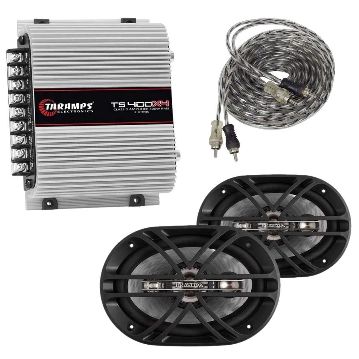 Kit Alto-Falante B4X69D 300Wrms + Módulo De Potência Ts400D 4-Ohms(4Cn) Taramps + Cabo Rca 5M - Bravox