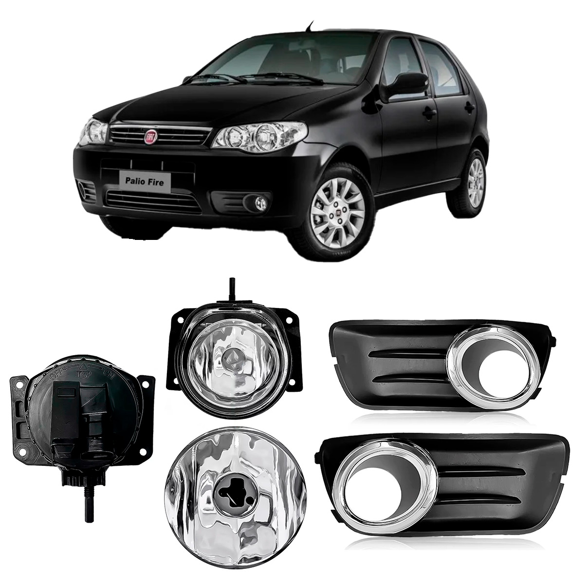 Kit Farol Auxiliar Palio Fire Economy Moldura Cromada Botão Tic Tac 2 Pinos - Suits