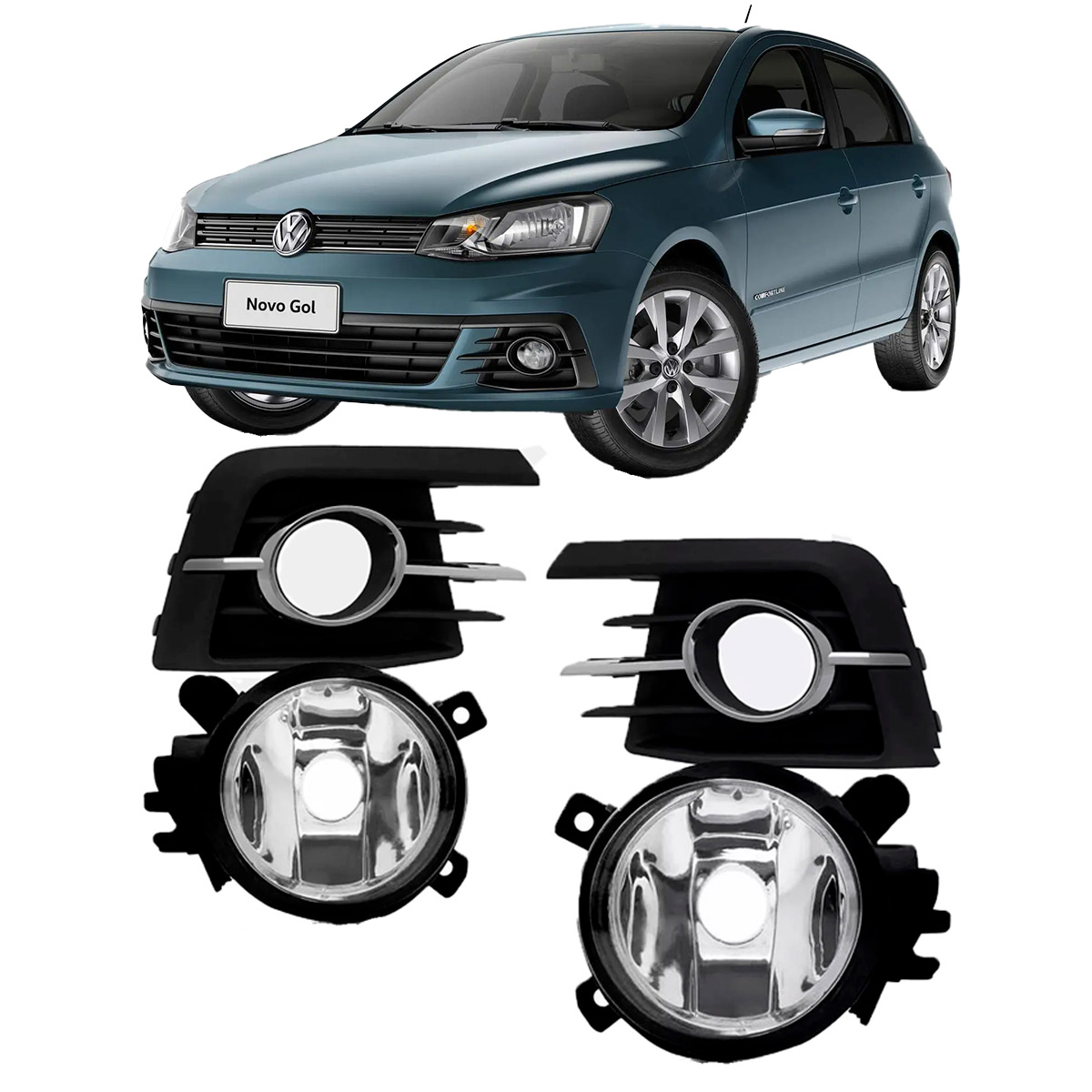 Kit Farol de Milha GOL e Voyage G7 com Moldura Cromada e Botão Tic Tac - Suits
