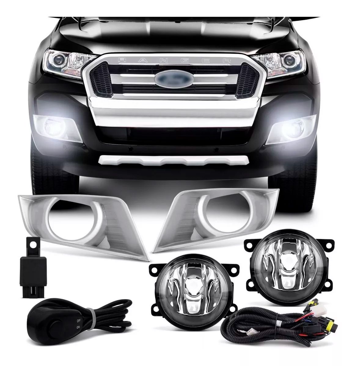 --- Descrição: Kit Farol de Milha Moldura Prata Ranger 2016 2017 2018 2019