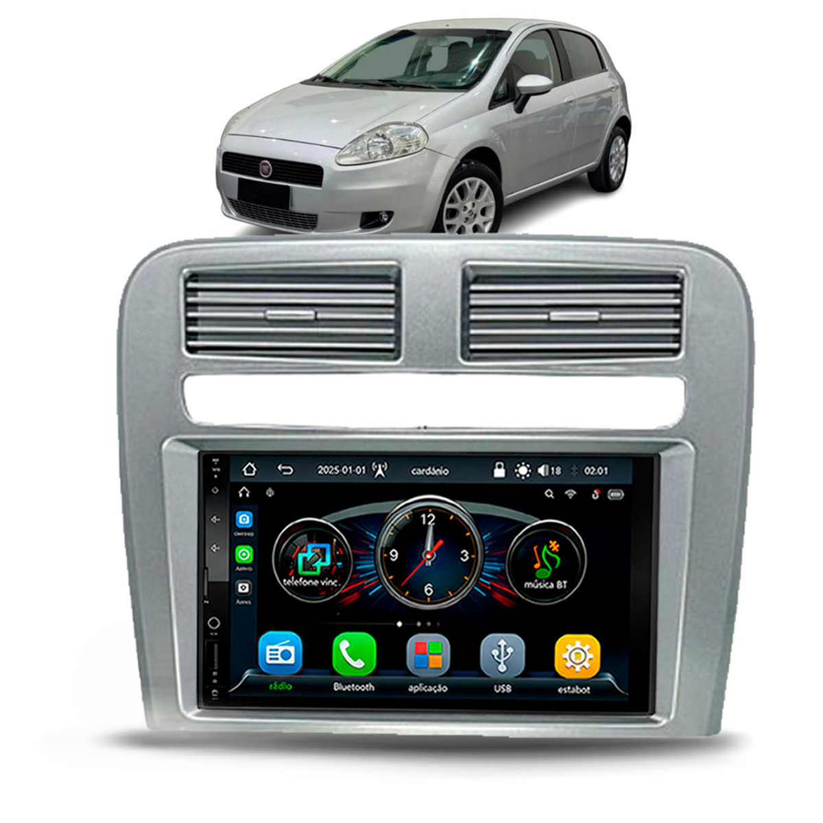 - 01 Moldura do Painel 2 Din Fiat Punto 2008 a 2012 Prata Padrão Japonês e Chinês