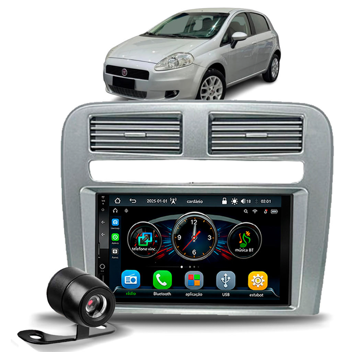 Também possui entrada para câmera de ré AHD 720P, trazendo mais segurança nas manobras.
