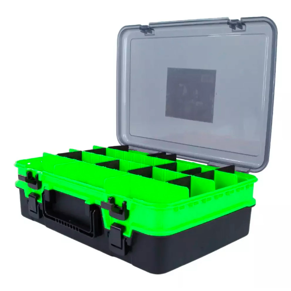 Maleta de Pesca Verde Acessórios Compartimento Duplo DivisóriasTrava Fácil Transporte Pesca Brasil