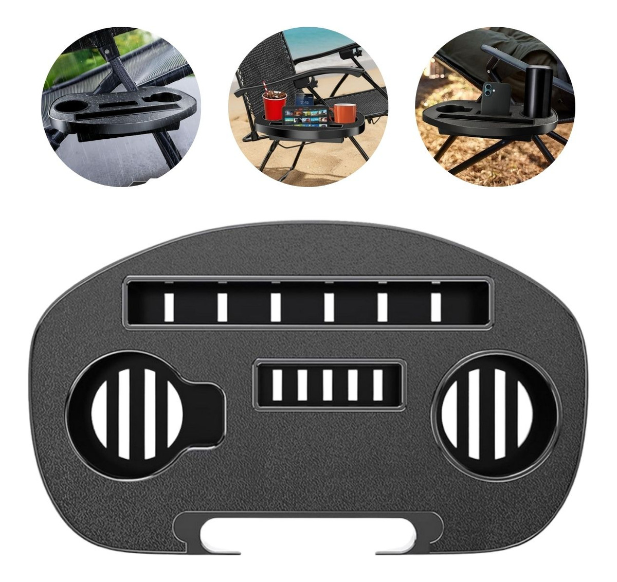 Com design funcional e encaixe fácil, a mesa se fixa na lateral da cadeira, criando um espaço estável para apoiar bebidas, celular, livros, petiscos e outros itens pessoais. Conta com 2 suporte para copos, evitando derramamentos e proporcionando mais comodidade.