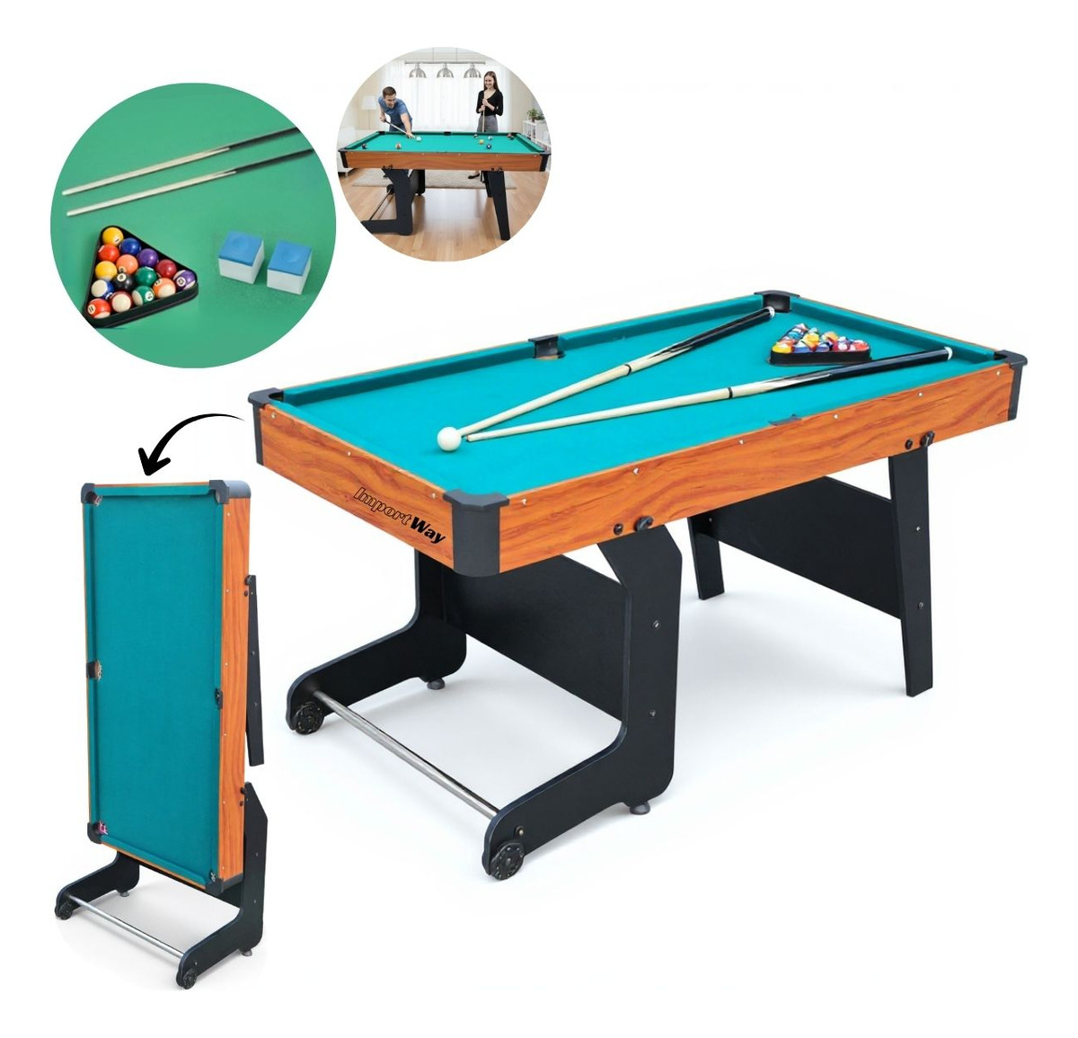 Com estrutura dobrável e portátil, a mesa é fácil de montar, guardar e transportar, ocupando pouco espaço. Seu acabamento refinado e materiais de qualidade proporcionam excelente estabilidade e jogabilidade suave, trazendo a experiência da sinuca profissional para dentro da sua casa.
