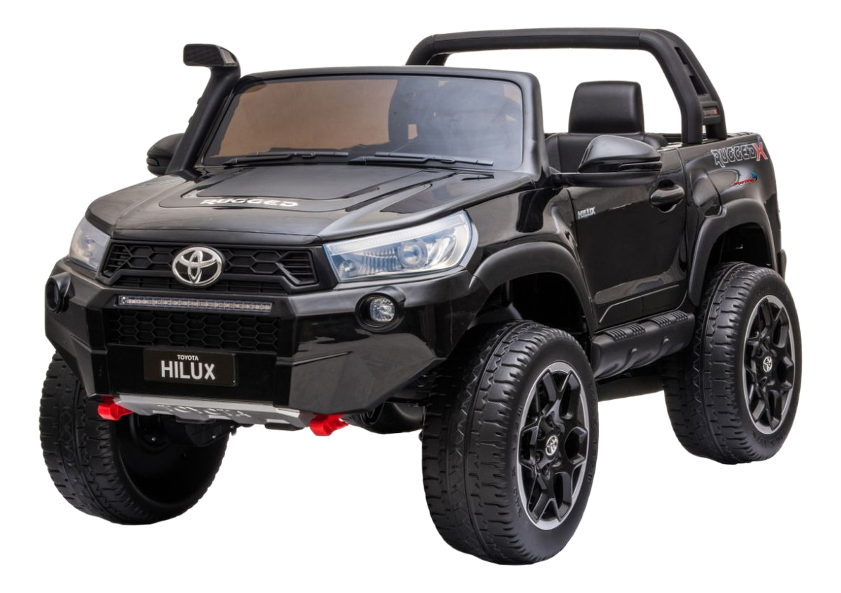 Modelado com base na popular Hilux, esta versão licenciada de brinquedo infantil possui motores potentes, controle remoto, farol, buzina, Entrada Usb e Bluetooth.
