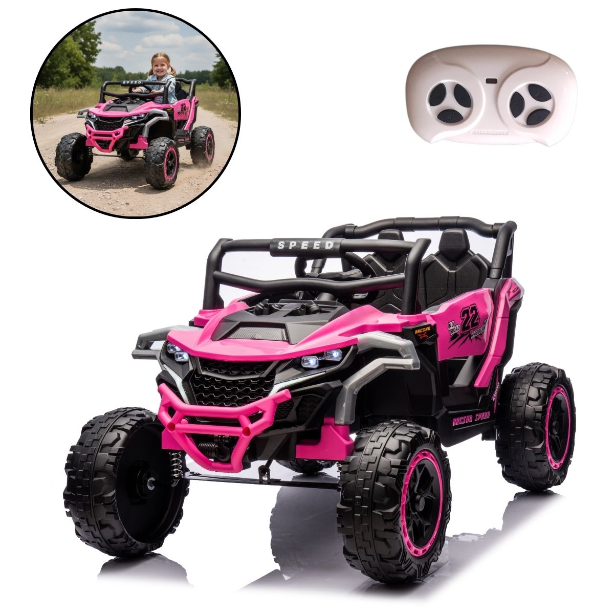 Com design moderno e robusto, o modelo conta com tecnologia de ponta, oferecendo controle remoto 2.4G, função de balanço, Bluetooth, entrada USB, e suspensão nas quatro rodas para um passeio suave e seguro.