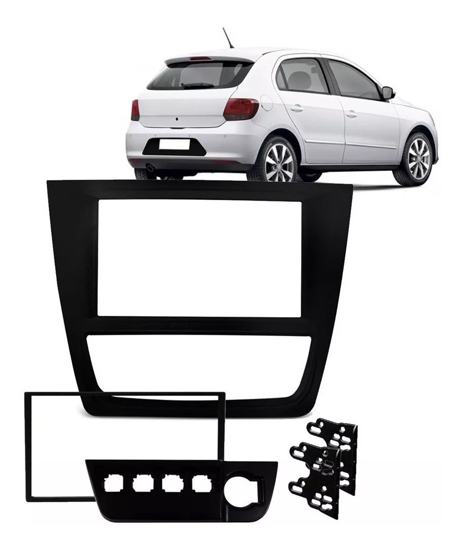 Esse tipo de moldura faz parte do acabamento do painel, e contribui para deixar o carro com um visual uniforme e elegante por dentro. Conjunto desenvolvido especialmente para a família G6, contém a moldura do painel, aro de acabamento, moldura do botão e suportes para a instalação. Fabricada em plástico rígido, é resistente e tem vida útil prolongada. Disponível na cor Preta, essa moldura é perfeita para compor o painel do seu Gol, Voyage ou Saveiro G6 para instalar central multimídia ou DVD 2 din.