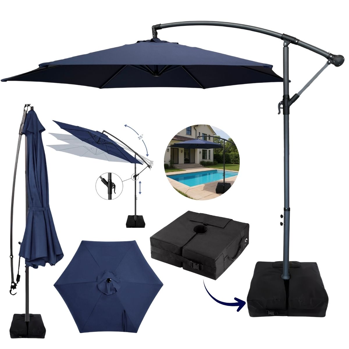 -01 Ombrelone Lateral 3,00m Azul com Base - Importway