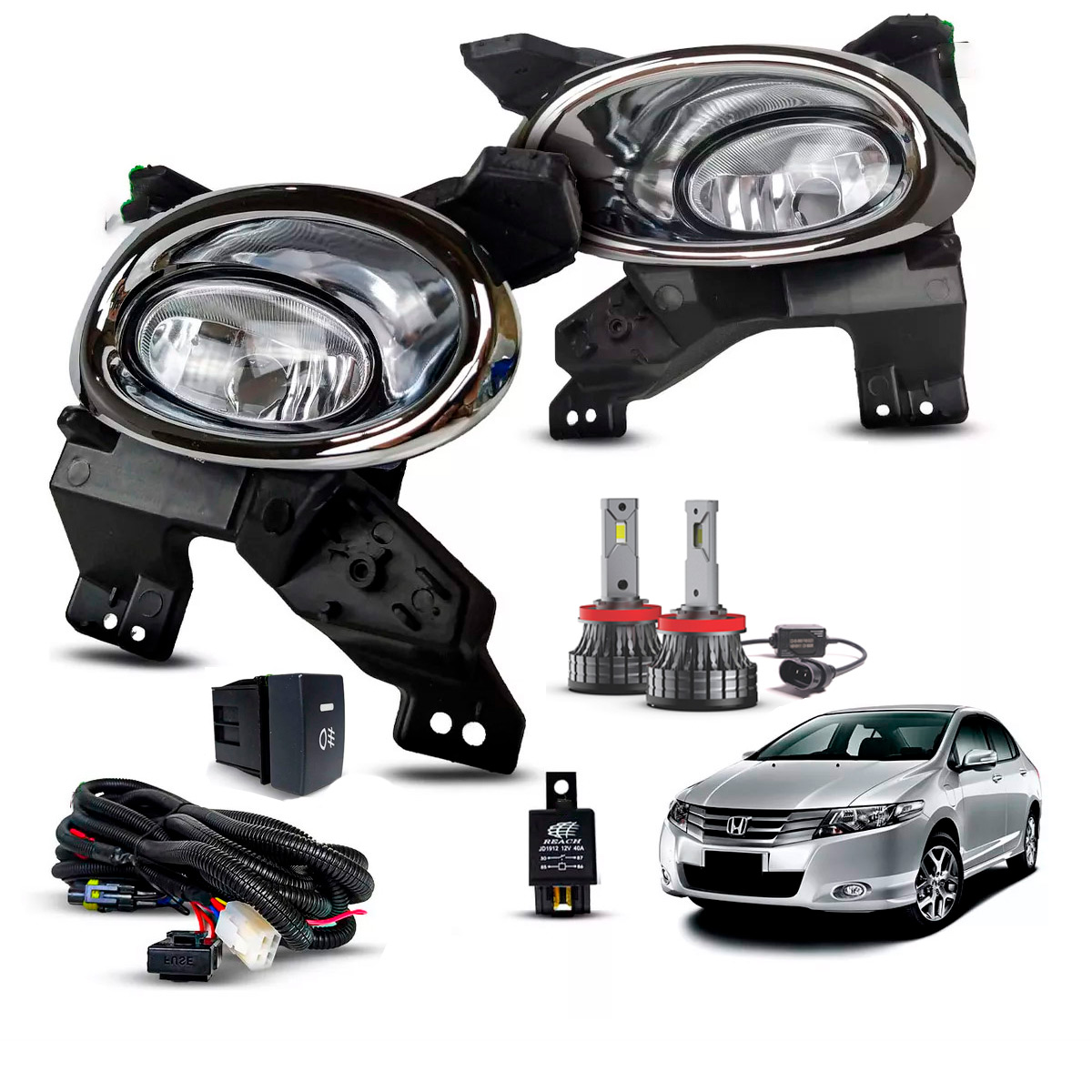 --- Descrição Kit Farol de Milha Grade Cromada Honda City 2009 2010 2011