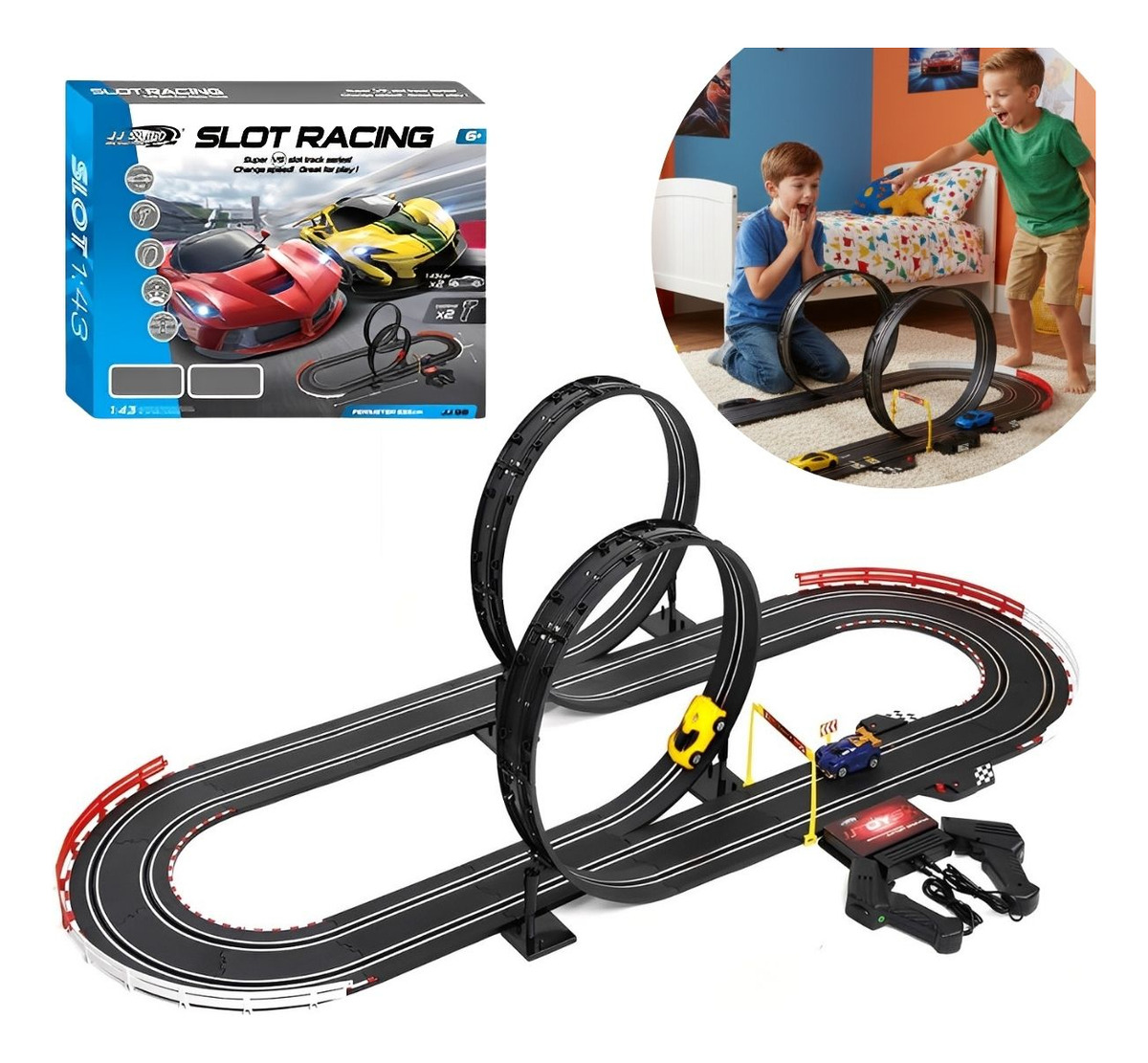 Perfeita para crianças e adultos que amam desafios e competições, a pista possui controle elétrico, curvas radicais e um design que proporciona corridas dinâmicas e emocionantes. Basta montar, ligar e acelerar para descobrir quem será o grande campeão!