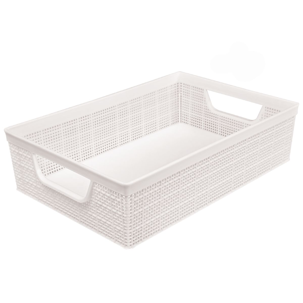 - 01 Cesta Organizadora A4 5,2 Litros Cor Branca Linha Juta Para Organização De Casa Armários Prateleiras