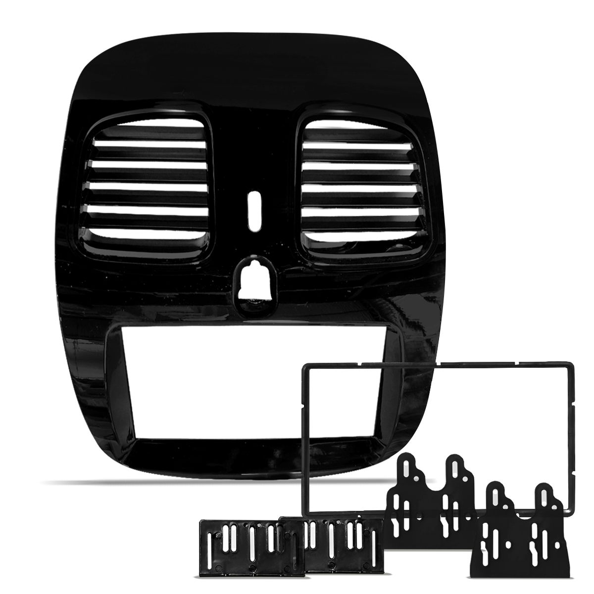 Fabricada em ABS na cor Black Piano , acompanha moldura intermediária e suportes laterais para fixação, usado para dar um acabamento perfeito no painel do seu carro após a instalação de um Multimídia ou um DVD automotivo.