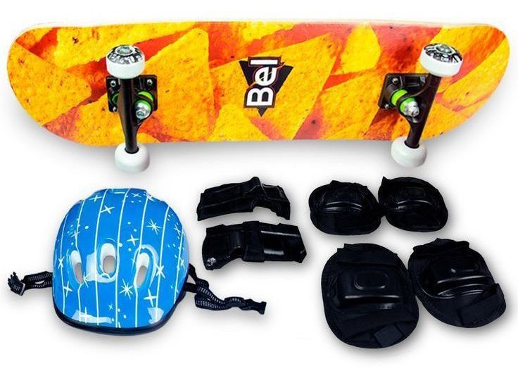 Descrição Skate Semi Profissional Nachos Laranja + Kit Proteção Azul - Bel: