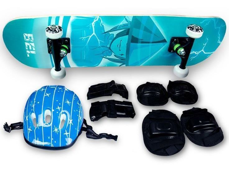 O skate da Belfix já vem com vários itens de segurança, capacete, joelheira, cotoveleira e luvas, tudo para garantir a segurança do seu pequeno