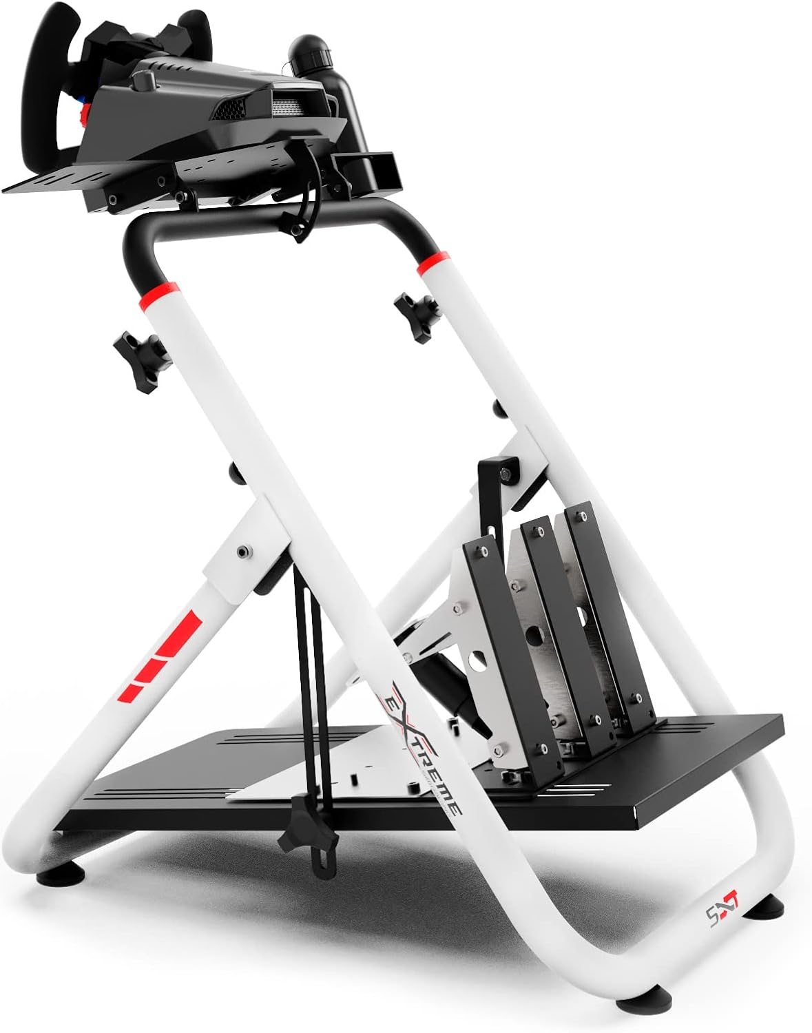 O Suporte para volante SXT V2 é o “mini cockpit” da Extreme Simracing. Sua estrutura é compacta, ajustável para pilotagem Turismo / GT e rebatível, porém tão robusta e estável quanto um cockpit topo de linha! Seu design possui dois tubos laterais de apoio para a base do volante e sua abertura é travada pelas chapas estruturais, com isso ele oferece grande estabilidade, capaz de suportar volantes pesados e com muito torque, como os que utilizam FFB do tipo “Direct Drive”. Pode ainda receber acessórios opcionais integrados, como o apoio para 1 ou 3 telas, apoio de câmbio inferior e apoio para teclado (vendidos separadamente). O SXT V2 é ideal para quem quer começar com um suporte compacto mas também ter a possibilidade futura de expandi-lo, mantendo o alto nível para seu equipamento simulador!